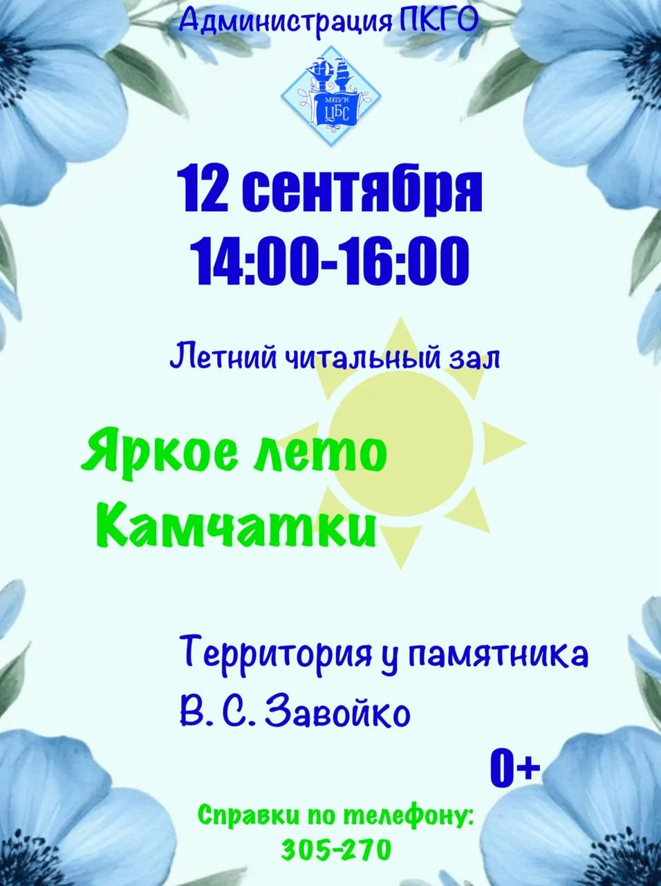 14:00 – летний читальный зал на территории у памятника В.С. Завойко;