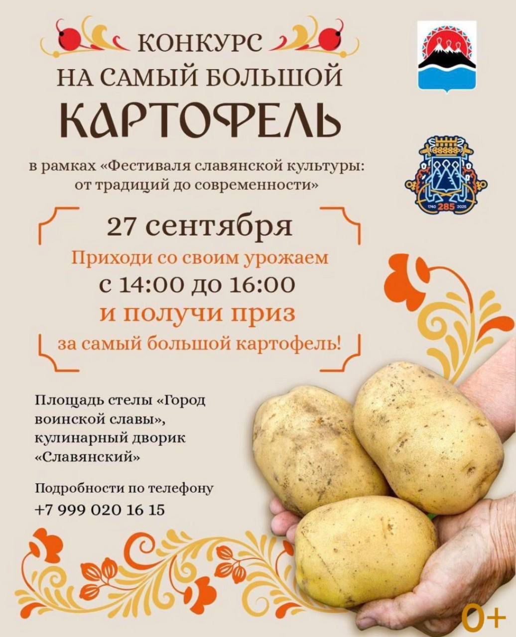 В 14:00 на площади у стелы «Город воинской славы» пройдет конкурс на самый большой картофель, поучаствовать смогут все желающие.