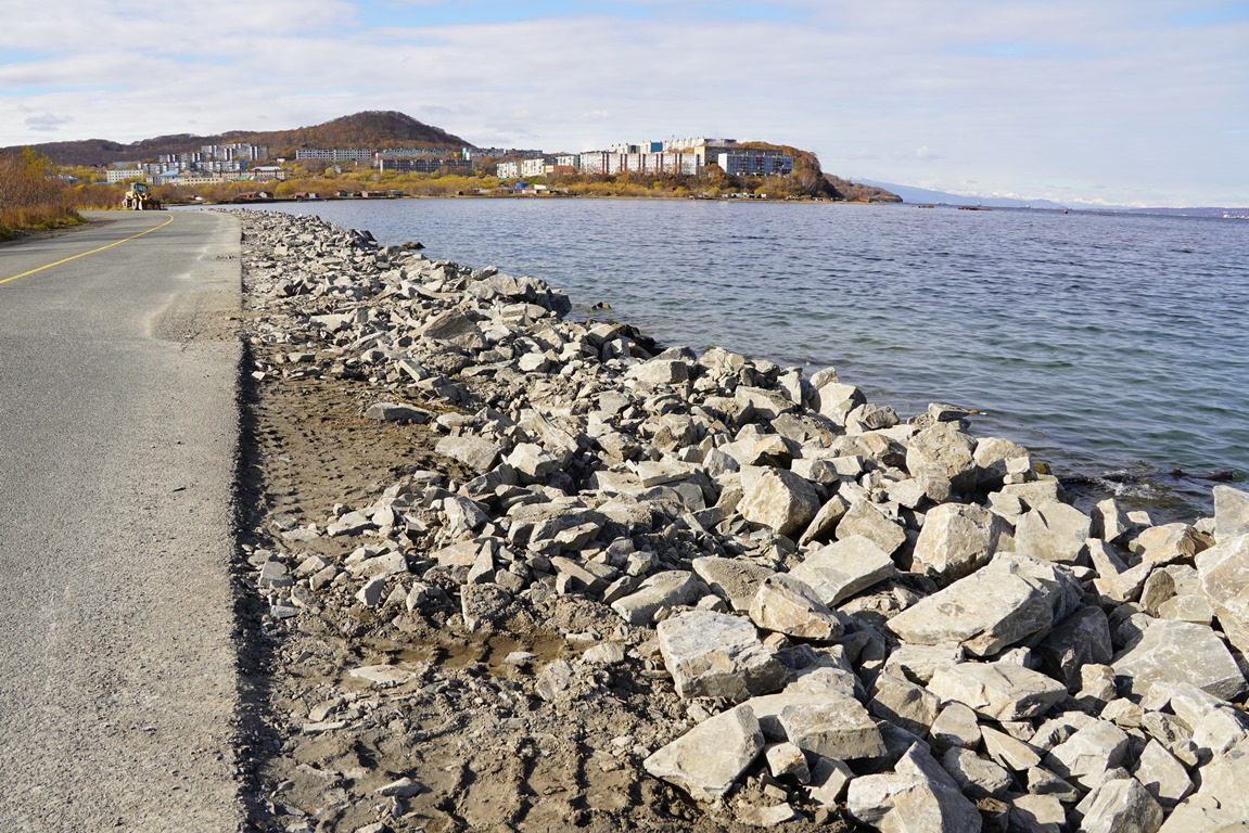 Как рассказали в Службе автомобильных дорог, данная мера призвана укрепить кромку дороги от возможного подтопления в случае повышения уровня воды в бухте.