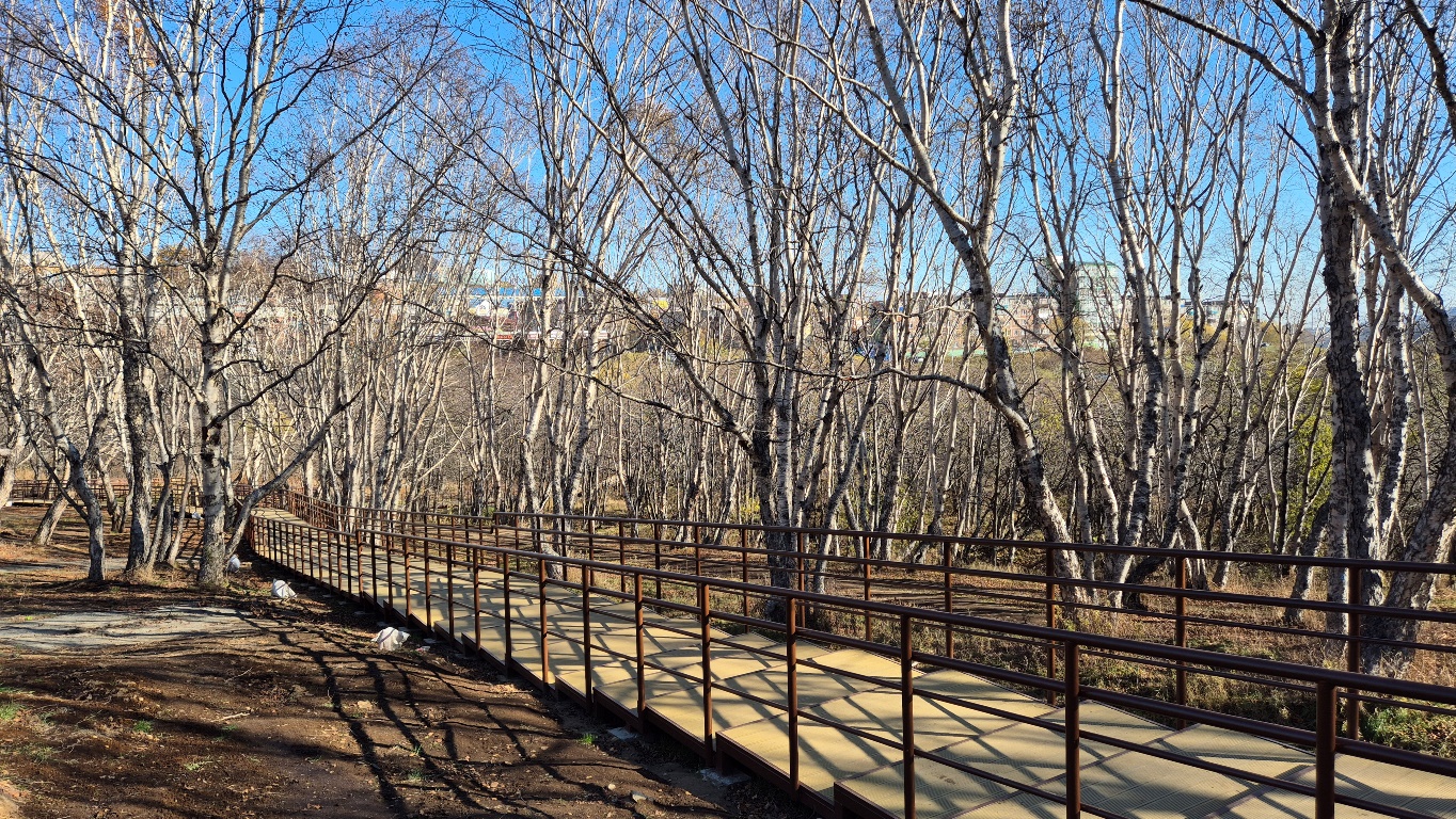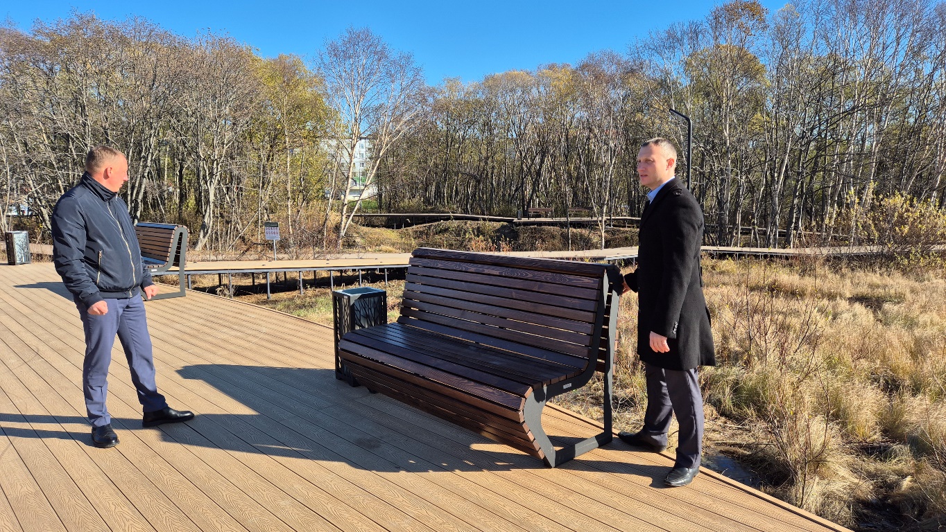 Глава Петропавловска-Камчатского Евгений Беляев проверил итоги благоустройства пешеходной тропы через лесной массив, которая соединила парк Победы (6 км) с остановкой на улице Академика Королёва (Нижний Горизонт).