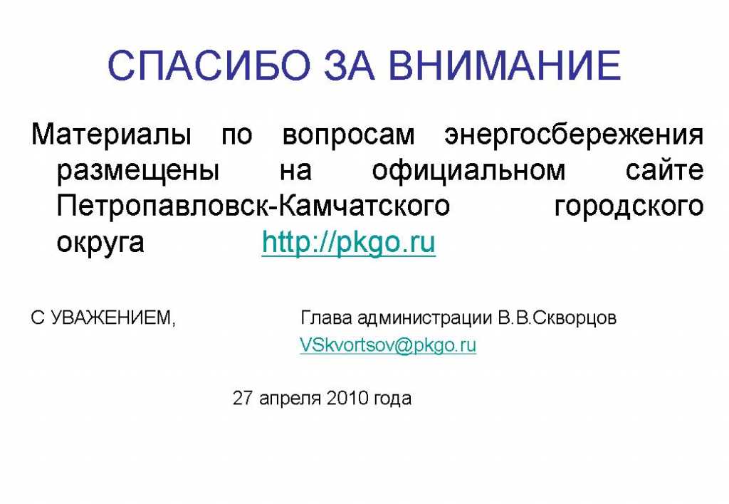 Доклад Главы Петропавловск-Камчатского городского округа о перспективах энергосбережения