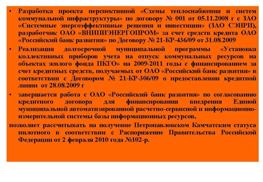 - Муниципальная долгосрочная целевая программа «Энергосбережение и повышение энергетической эффективности в Петропавловск-Камчатском городском округе на 2010-2020 годы»